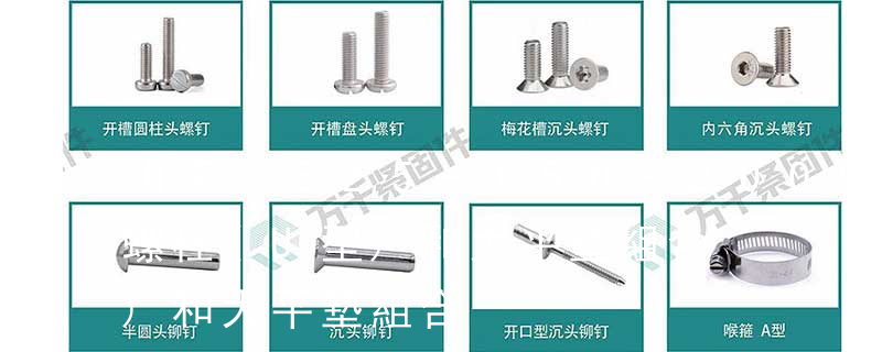 螺栓類:外六角螺栓、外六角法蘭面螺栓、內(nèi)六角圓柱頭螺栓、吊環(huán)螺栓、膨脹螺栓、沉頭內(nèi)六角螺栓、盤頭內(nèi)六角螺絲、馬車螺栓、雙頭螺栓、蝶型螺絲、活節(jié)螺栓、地腳螺 栓、U型螺栓、四角螺栓等 螺帽類:鉚螺母、吊環(huán)螺母、