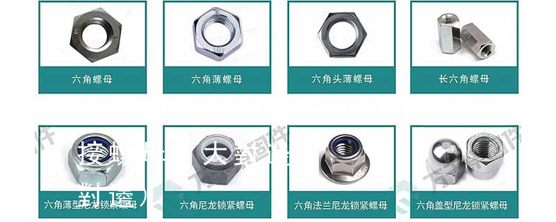 六角焊接螺母標準規定的是規格為M4-M16的焊接螺母,是適用于可焊接的鋼板連成的焊接螺母,其具體國標GB(GB/T)見下圖。要注意正確讀取標準表中的數字,如螺紋規格D=M10,即材料為含碳量不大于0.25%的鋼,不經表面處理的 法蘭面螺母(GB6177/DIN6923)、法蘭面螺母尼龍鎖緊螺母(DIN6926)、四角焊接螺母(DIN928)、六角焊接螺母(DIN929)、蝶帽(GB62、DIN315、美制)、K帽等。2、合金鋼國標螺母的標準尺寸為5/16-4"。合金鋼國標螺母包