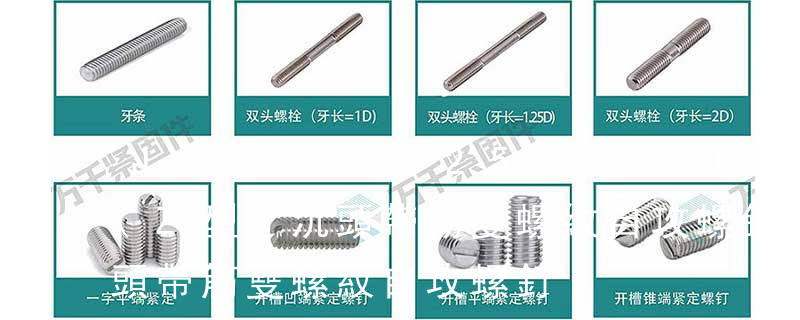 1)開槽普通螺釘多用于較小零件的連接。它有盤頭螺釘、圓柱頭螺釘、半沉頭螺釘和沉頭螺釘。盤頭螺釘和圓柱頭螺釘的釘頭強度較高,瑁在普通的部件連接上;半沉頭螺釘的頭部呈弧形,安裝后它的頂端略外露,且美觀光滑,一般用