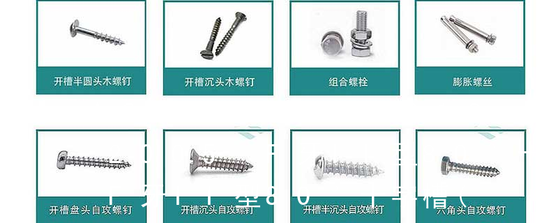 (鐵板牙自攻螺絲) B-2: Plastic Tapping Screw. (塑膠用,自攻螺絲) C: Wooden Screw : 木工螺絲 D: Drywall Screw :水泥墻螺絲 E: Self Drilling Screws鉆尾螺絲(不銹鋼鉆尾螺絲,復合材料鉆尾螺絲) F:膨脹螺絲,四片膨脹螺絲又
